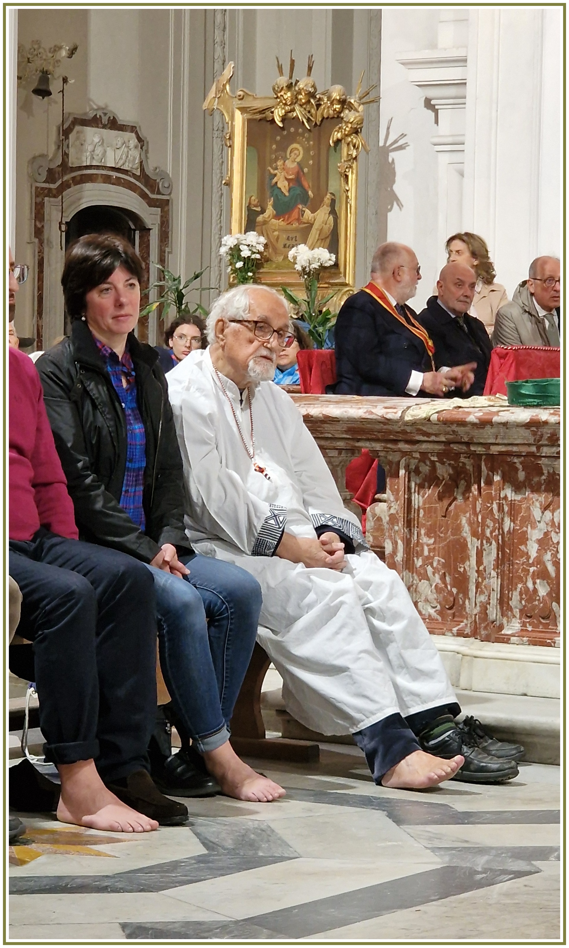 In questo tempo ferito e disilluso, Battaglia ci ha chiamati “in piedi, costruttori di pace”. Non da spettatori o devoti distanti, ma da fratelli e sorelle che si sporcano le mani e si chinano gli uni sugli altri per lavare, servire, guarire. Insieme a lui, tra la comunità raccolta, anche padre Alex Zanotelli, testimone radicale di Vangelo, di giustizia e d’acqua per gli ultimi del mondo.