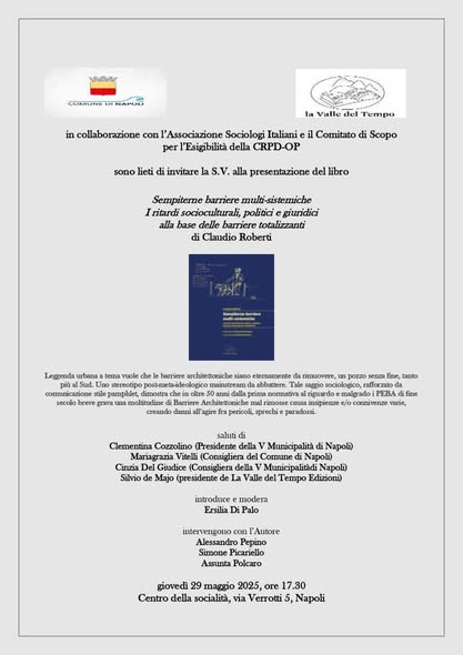 Sarà presentato il libro di Claudio Roberti, pubblicato da La Valle del Tempo, che affronta con parole vive e testimonianze vere la quotidianità di milioni di persone in Italia: oltre 4 milioni di cittadini disabili, spesso resi invisibili non dalla loro condizione, ma dallo sguardo degli altri e dall’indifferenza delle istituzioni.