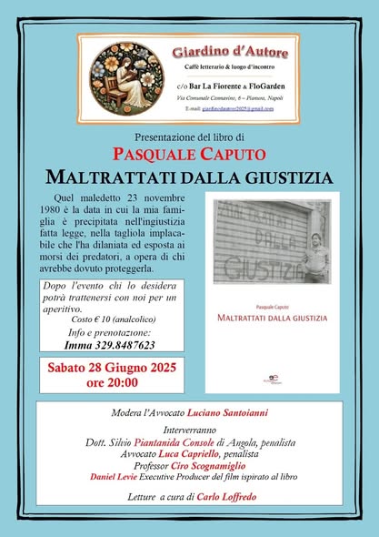 Ed è proprio tra noi che stasera c’è #Pasquale #Caputo, che ha bussato a tante porte e oggi porta il suo libro per condividere una storia di tristezza e di #cattiva #giustizia, ma anche — e soprattutto — di #speranza.