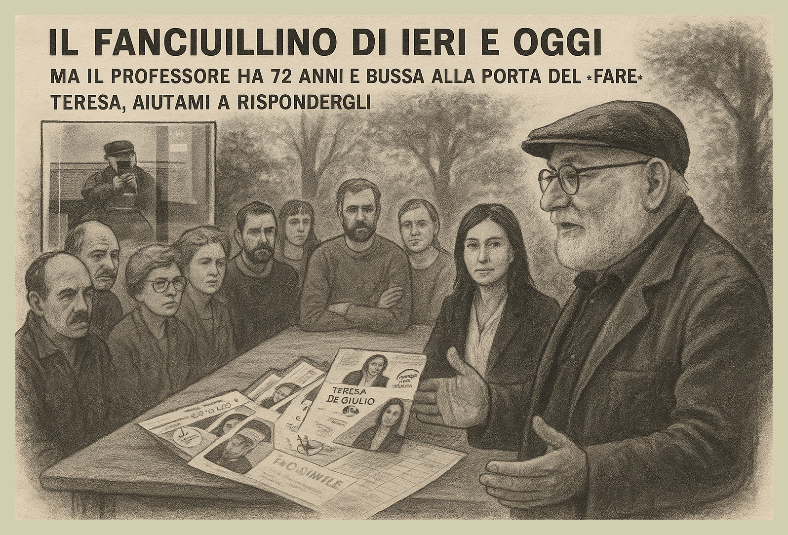 Tra le carte sul tavolo – fac-simile elettorali, schede, biglietti stropicciati – compare un nome: Teresa De Giulio.