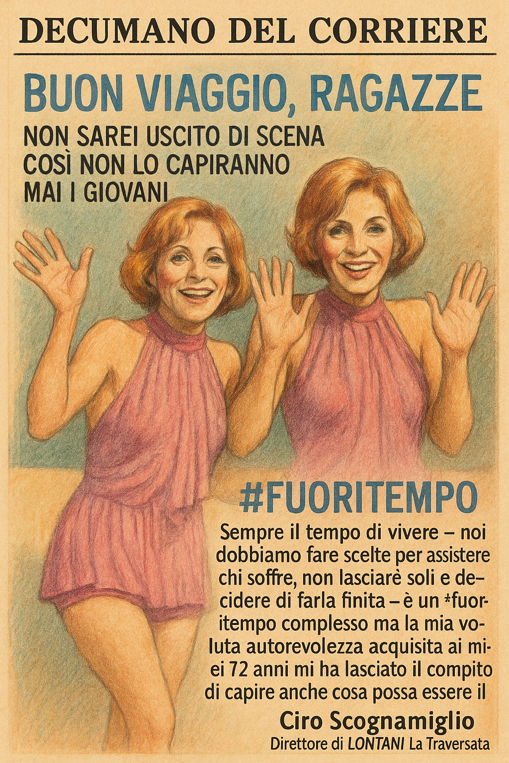 Eppure, ogni tanto, apparizioni pubbliche trasformano la fine della vita in uno spettacolo di libertà. Le sorelle #Kessler, icone di un’Italia che correva verso la modernità, hanno deciso di morire insieme attraverso il suicidio assistito. Un gesto che ha colpito molti, e che per altri è sembrato persino affascinante nella sua simmetria: sono nate insieme, se ne vanno insieme.