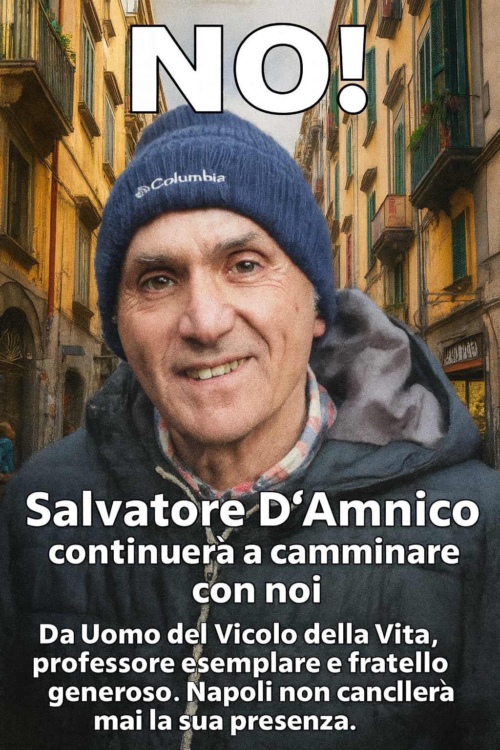 Ma Salvatore non era soltanto un amico: era una presenza costante, discreta e luminosa. Un uomo del Vicolo della Vita, che camminava anche per me, e per tanti che non avevano più forza di farlo da soli.