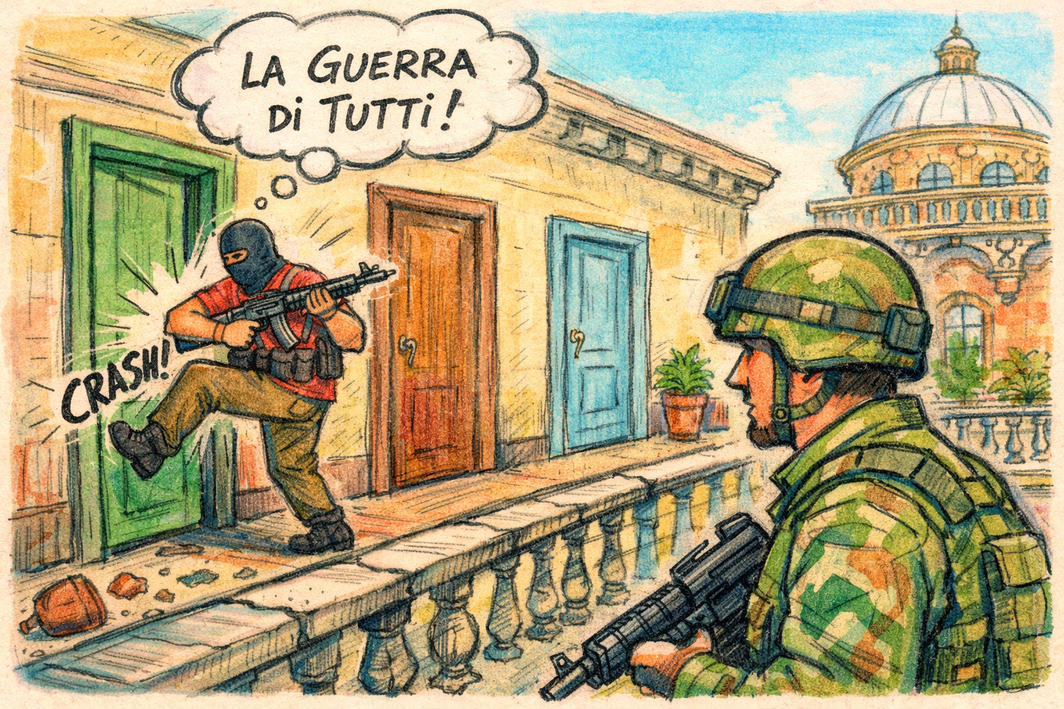 Dal vicolo – che è il luogo dove le parole arrivano tardi ma restano vere – la domanda non è chi ha ragione, bensì che cosa stiamo facendo quando chiamiamo pace ciò che è preparazione alla guerra.
