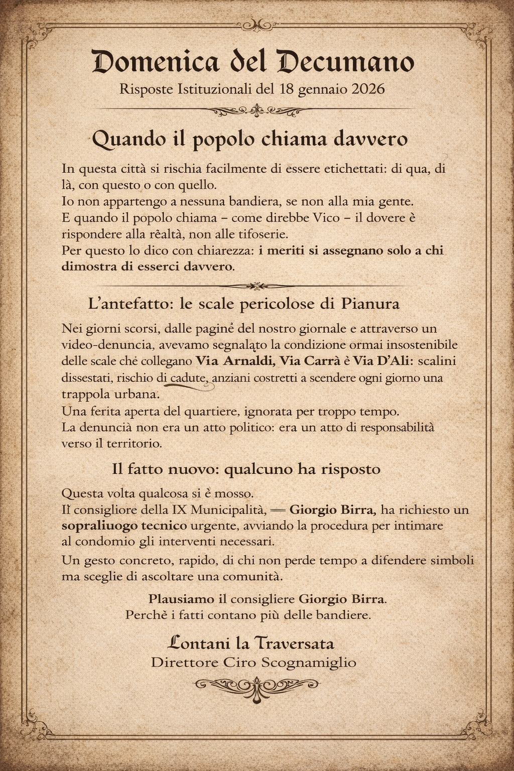 E quando il popolo chiama — come direbbe Vico — il dovere è rispondere alla realtà, non alle tifoserie.