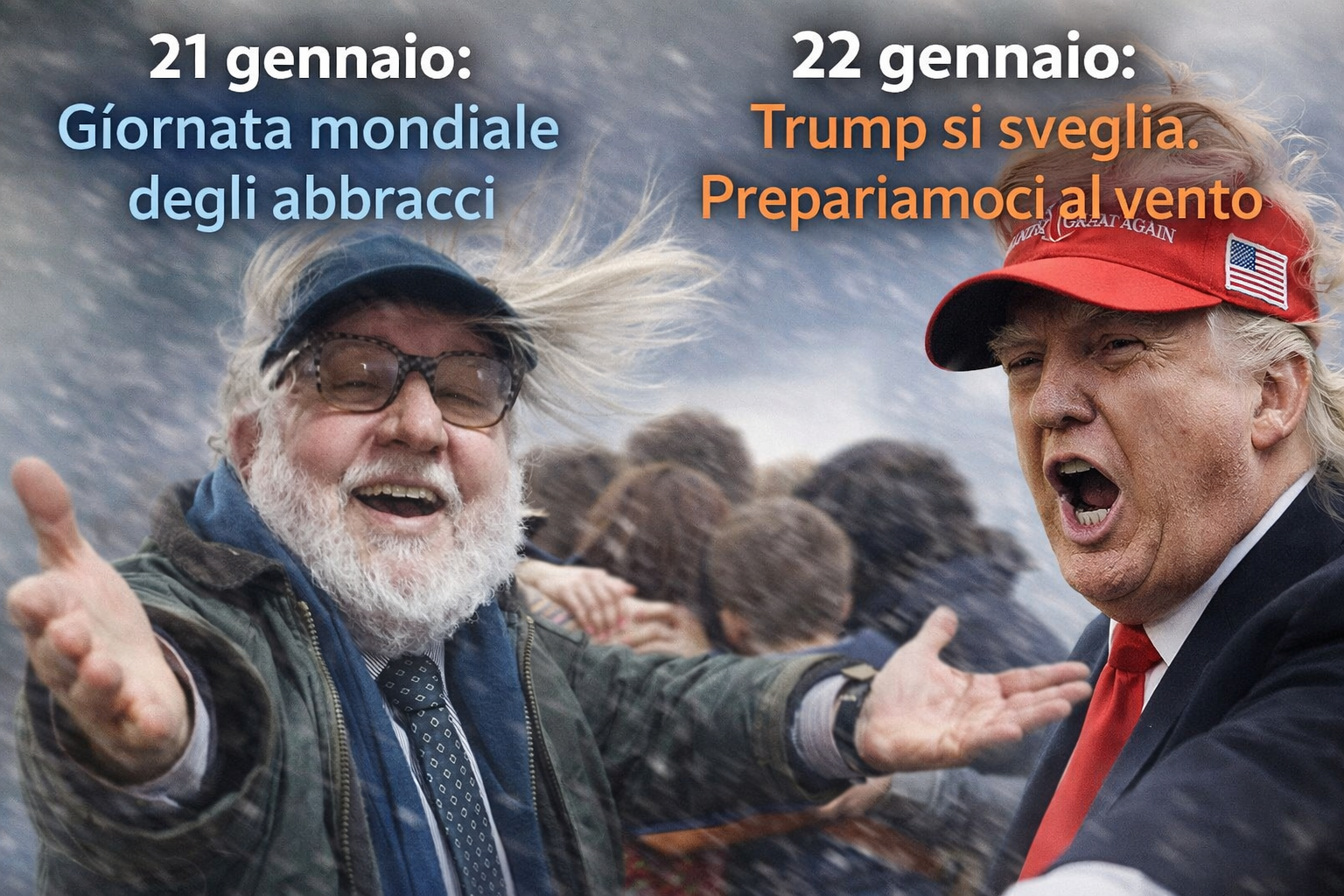 Oggi, però, è anche la Giornata Mondiale degli Abbracci, e questo cambia tutto. Prima di capire la geopolitica, dovremmo ricordarci di capire l’umanità. Un abbraccio è l’opposto di una guerra e di una minaccia: è il primo manuale di pace che ci è stato consegnato appena nati. Per questo chiedo a tutti, almeno oggi, di dire una cosa bella: un grazie, un perdono, un ricordo, un semplice “ci sono”.