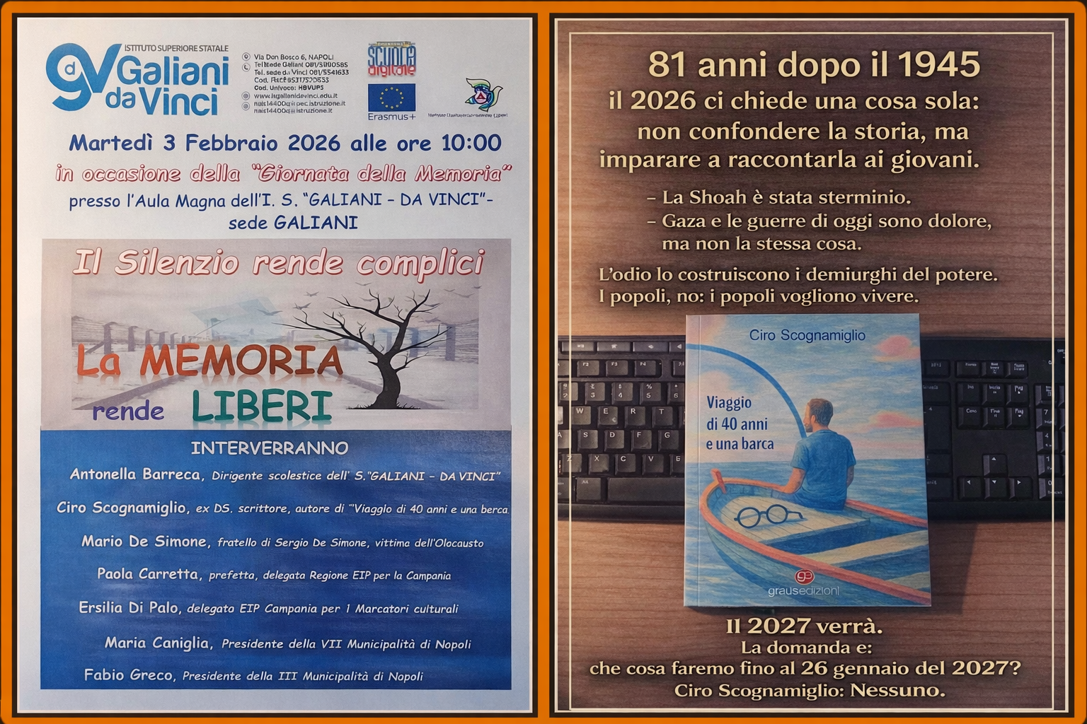 Un comitato operativo – Barreca, Errera, Ferrante, con me e con la scrittrice Mena Sorrentino – ha dato vita alla locandina ufficiale e al programma della giornata del 3 febbraio 2026, presso l’Istituto Galiani–Da Vinci.