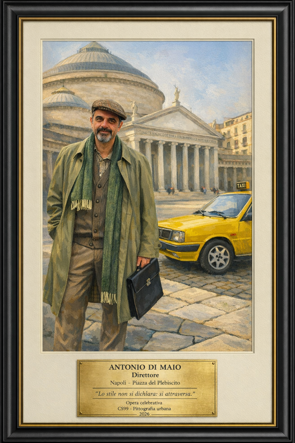 È Antonio Di Maio, direttore di un giornale del suo tempo. La fotografia è di sua proprietà, esaltata e trasformata in pittografia da un vecchio fotografo vagabondo.