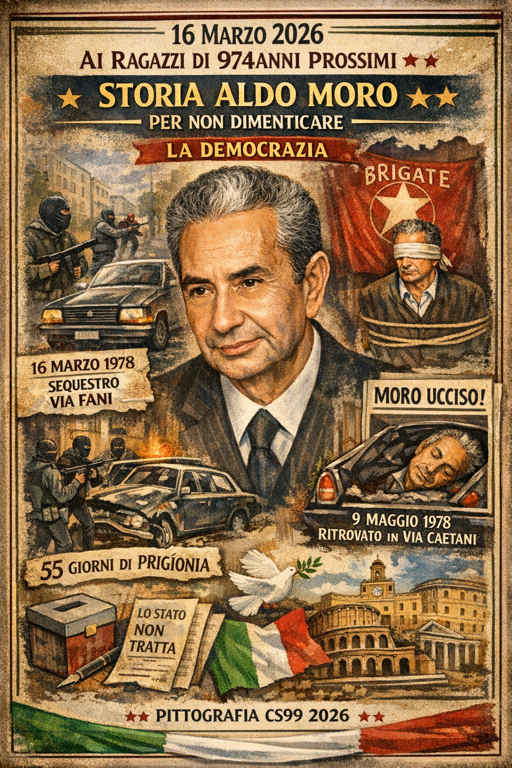 Il 16 marzo non è una data neutra nella storia italiana. È il giorno in cui la Repubblica ha guardato dentro se stessa e ha visto la propria fragilità. La mattina del 16 marzo 1978, a Roma, in via Fani, un commando delle Brigate Rosse attaccò il convoglio su cui viaggiava Aldo Moro. Furono uccisi cinque uomini della scorta e Moro venne rapito. Cinquantacinque giorni dopo, il 9 maggio, il suo corpo fu trovato nel bagagliaio di una Renault 4 nel centro della capitale.